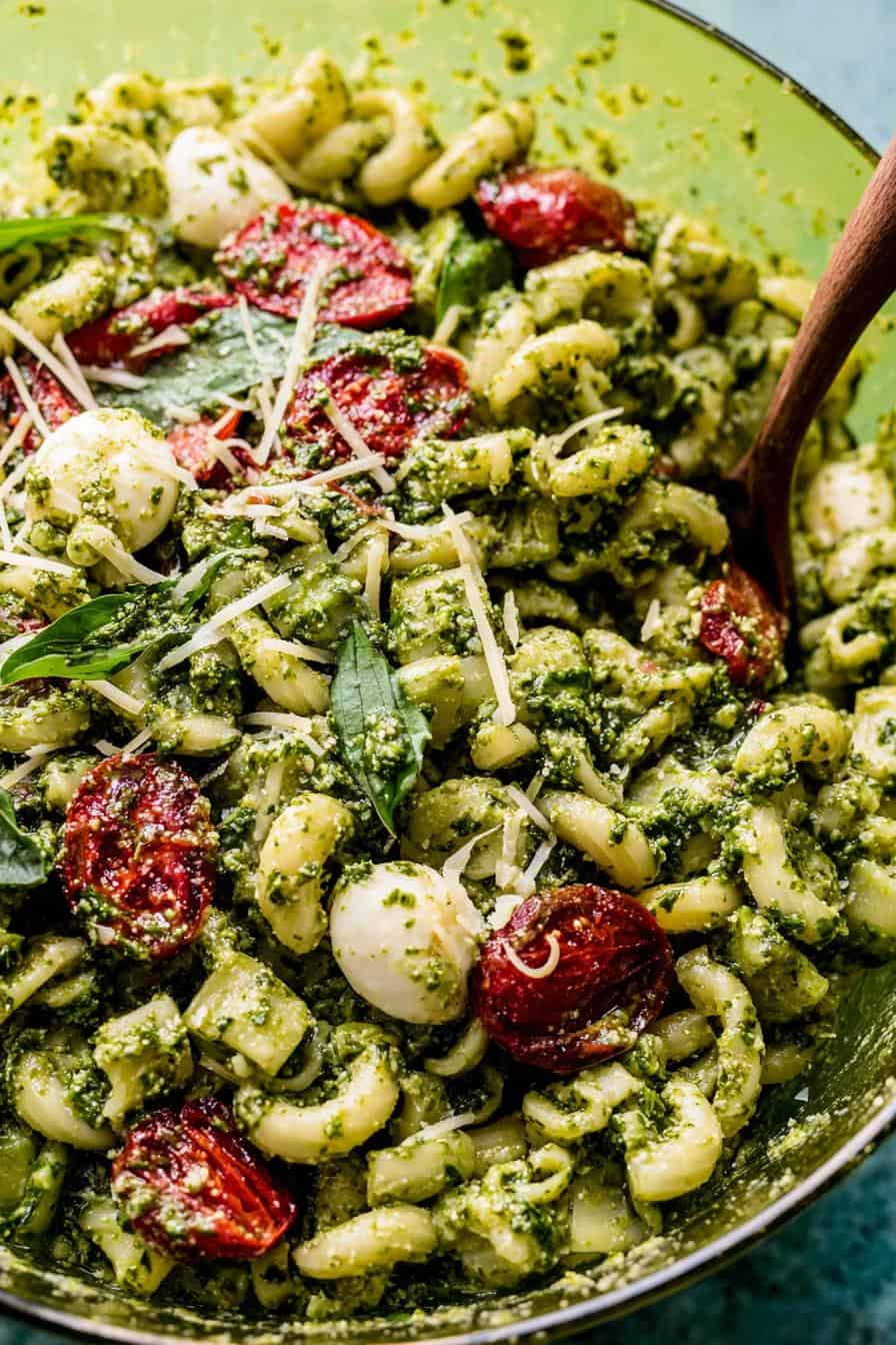I get a lot of questions about this Kale Pesto Mozzarella Pasta Salad, and I totally get it! When you find a recipe this good, you want to make sure you’re getting the most out of it. So, let’s clear up some of the most common things people ask me about this delicious dish. Hopefully, these answers will help you make and enjoy your pasta salad to the fullest!