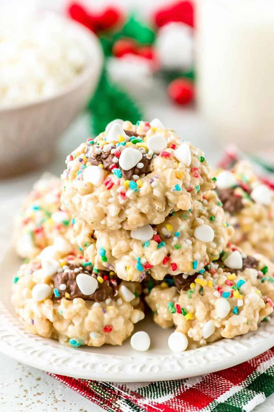Oh, man, do these White Hot Chocolate No Bake Cookies bring me back! I remember leaving out plates of my mom’s no-bake cookies AND her sugar cookies for Santa. Two plates! Hey, a girl had to hedge her bets, right? Anyway, I wanted to create a no-bake cookie that’s totally nut-free (like, seriously, no nuts allowed!), quick, and easy but with a fun, modern twist. That’s how these babies were born! Trust me, after years of tweaking recipes, I’ve kinda got a knack for this, and this recipe is a total winner. It’s so easy, even the kids can help! And I think you’ll find that the White Hot Chocolate flavor is just so fun!
